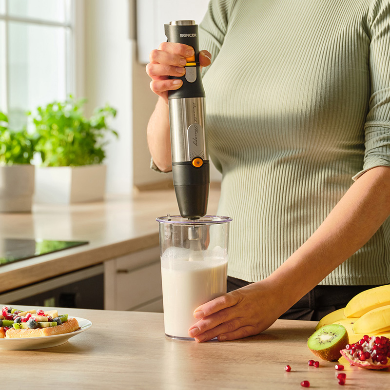 Atașament din oțel oinoxidabil care poate fi folosit și pentru mixarea alimentelor calde