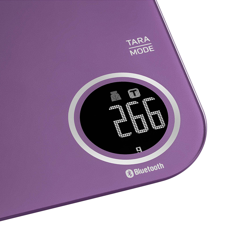 Conectarea cântarului cu telefonul mobil prin Bluetooth este incredibil de rapidă, intuitivă și ușoară. Practic imediat, veți vedea pe ecranul smartphone-ului (și nu contează dacă preferați un dispozitiv Android sau iOS) greutatea măsurată, apoi pur și simplu introduceți produsul pe care îl cântăriți pentru a vedea instantaneu cât zahăr, grăsime, energie etc. conține alimentul respectiv.