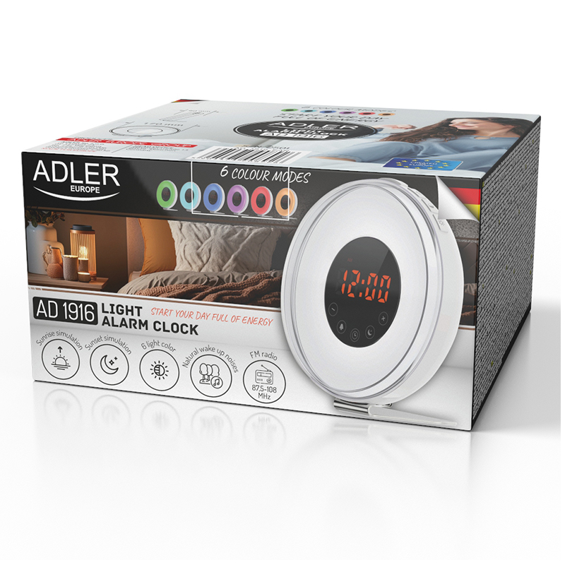 Ești gata să-ți transformi rutina de dimineață? Descoperă ceasul deșteptător cu lumină Adler AD 1916, o soluție modernă concepută pentru a-ți sprijini ritmul biologic, a îmbunătăți calitatea somnului și a face fiecare dimineață mai liniștită și mai revigorantă. Nu mai ești trezit brusc de un sunet strident, ci te vei simți odihnit și pregătit pentru o nouă zi.