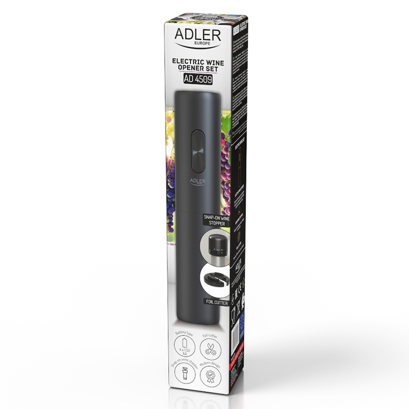 Setul Adler AD 4509 este un cadou perfect pentru orice iubitor de vin. Designul său elegant, ușurința în utilizare și funcționalitatea îl fac un gadget indispensabil pentru orice cină sau reuniune cu prietenii. Bucurați-vă de fiecare moment cu vinul preferat datorită desfăcătorului electric de vin Adler AD 4509.