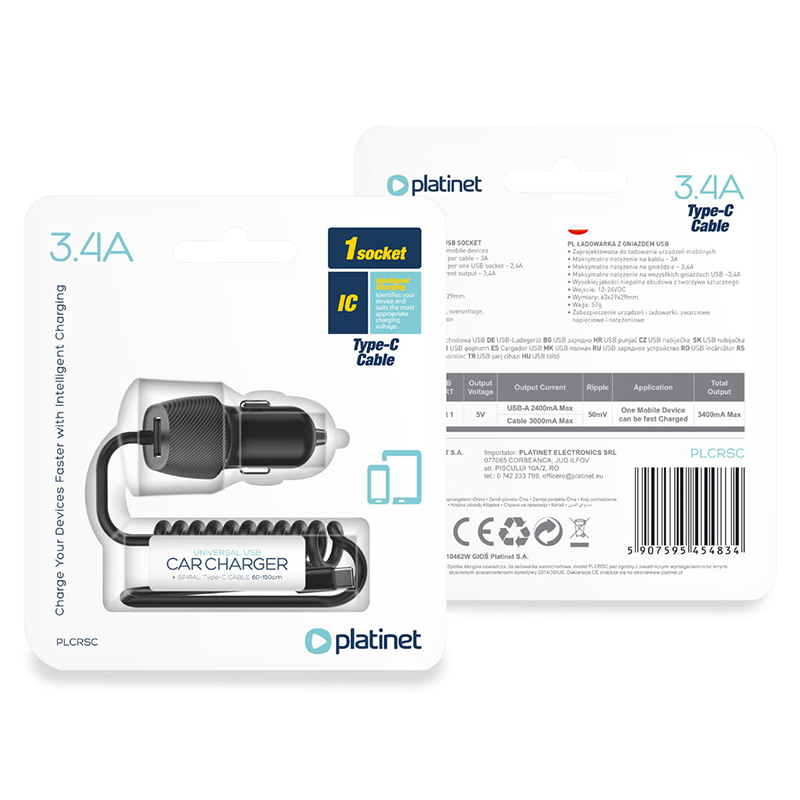 (PLCRSC) INCARCATOR AUTO CABLU SPIRALAT 3.4A TYPE C