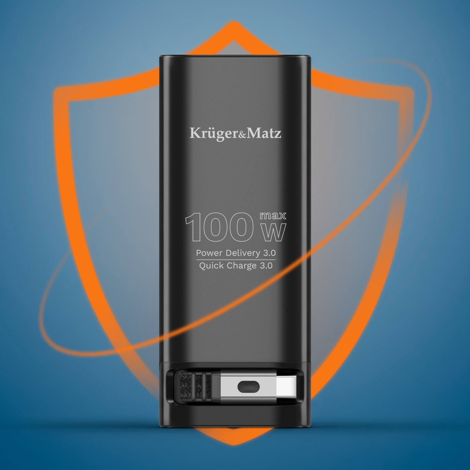 Power bank-ul Kruger&Matz ofera putere reala intr-o forma compacta. Suportul pentru Power Delivery 3.0 de pana la 100W inseamna ca poti incarca rapid nu numai telefonul, ci si laptopul si alte dispozitive solicitante. Gata cu asteptarile lungi - acum primesti un impuls solid de putere in cateva momente. Datorita suportului Quick Charge 3.0, dispozitivele tale functioneaza mai rapid si mai mult timp, astfel incat sa te poti concentra pe ceea ce este important pentru tine.