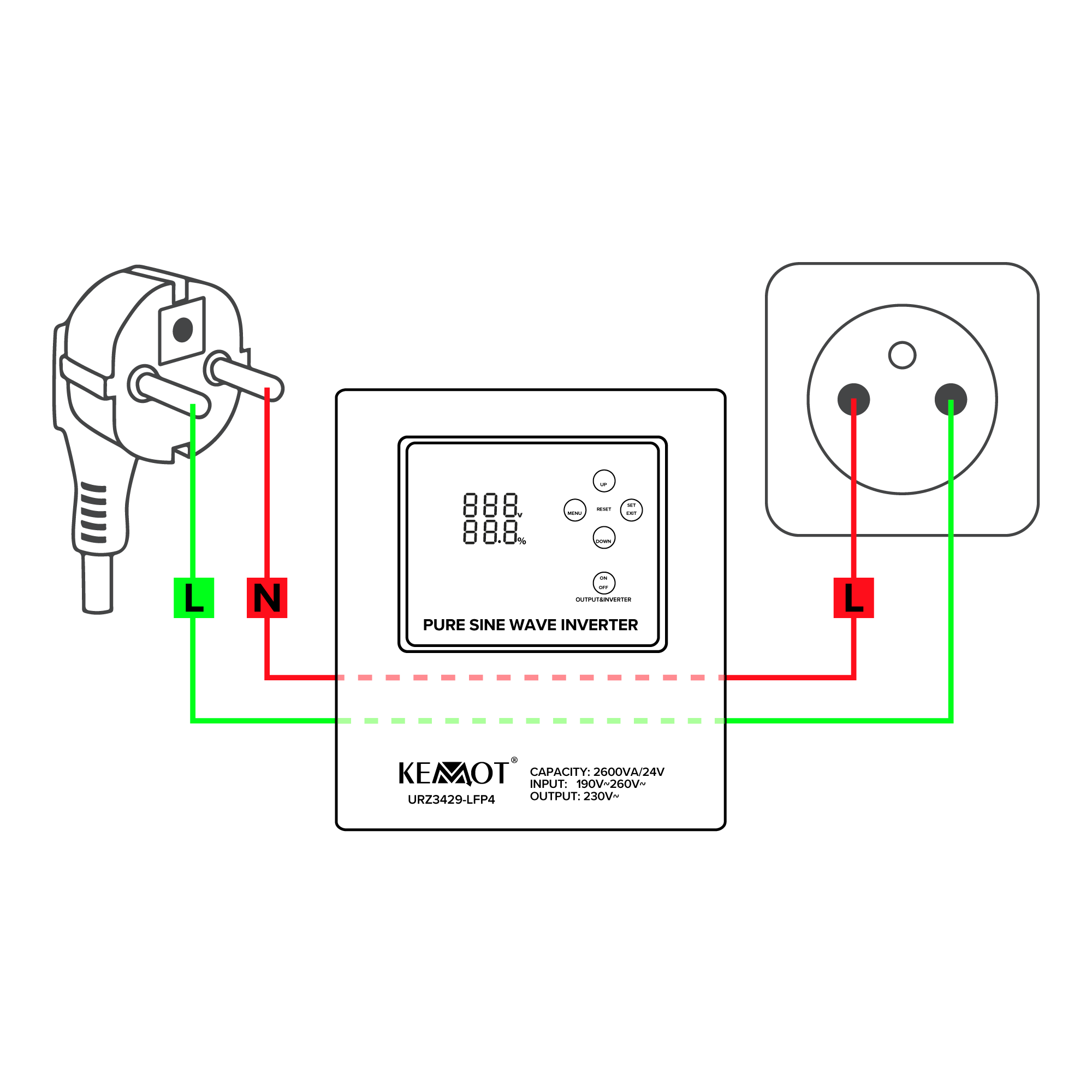 UPS-urile KEMOT functioneaza cu dispozitive echipate cu detectare de faza, cum ar fi unele modele de centrale pe gaz. Faza de la dispozitivul nostru este pozitionata in acelasi loc, la priza de iesire, indiferent daca UPS-ul este alimentat de o priza de perete sau de o baterie.