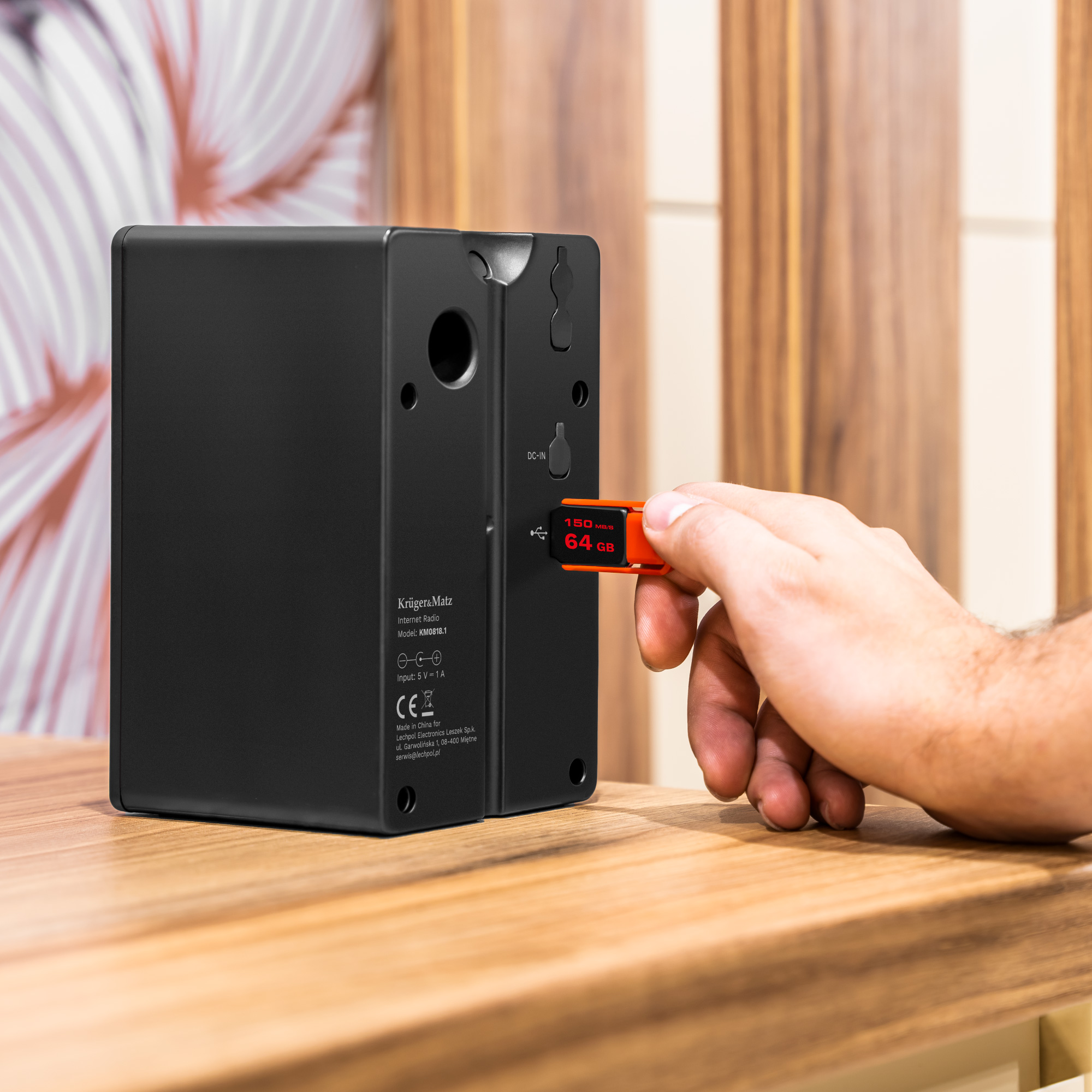 Functionalitatea radioului cu internet KM 818.1 este imbunatatita si de portul USB. Cu acesta, nu numai ca poti conecta un stick USB cu muzica ta preferata, poti si sa-ti incarci cu usurinta smartphone-ul. In plus, dispozitivul va ofera si optiunea de a reda muzica de pe computer prin serverul UPnP.