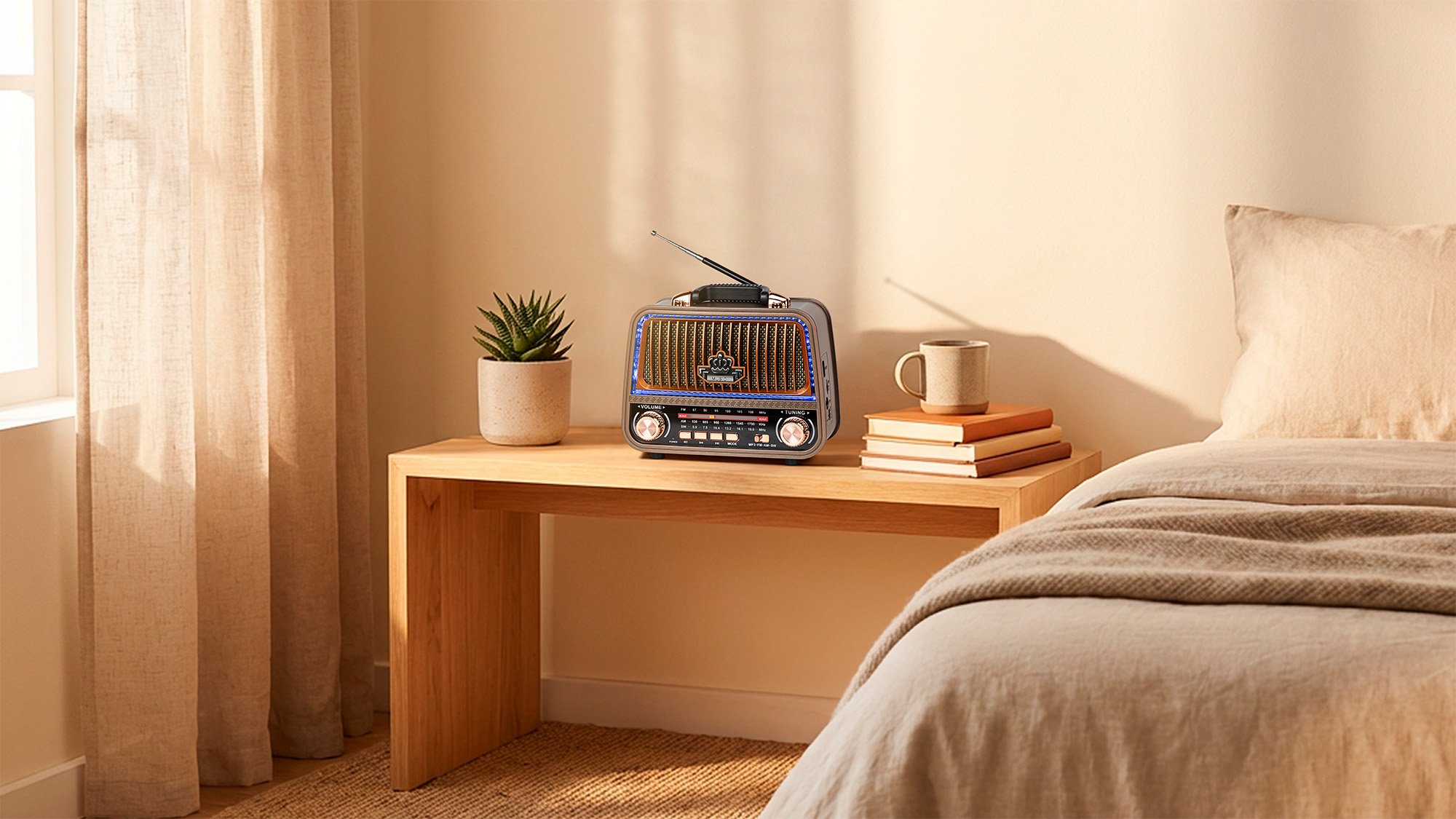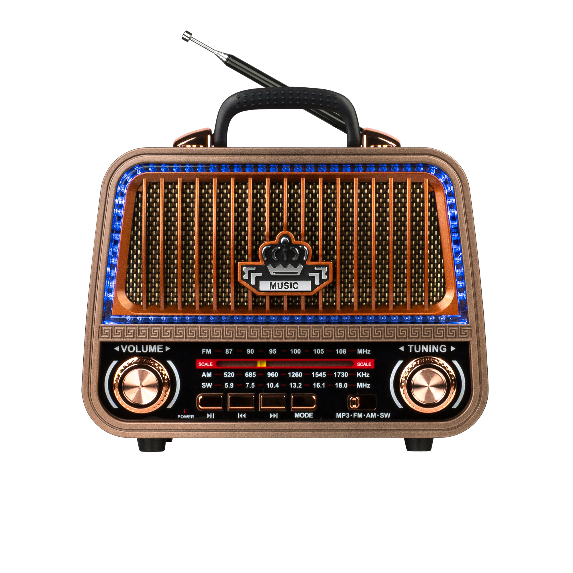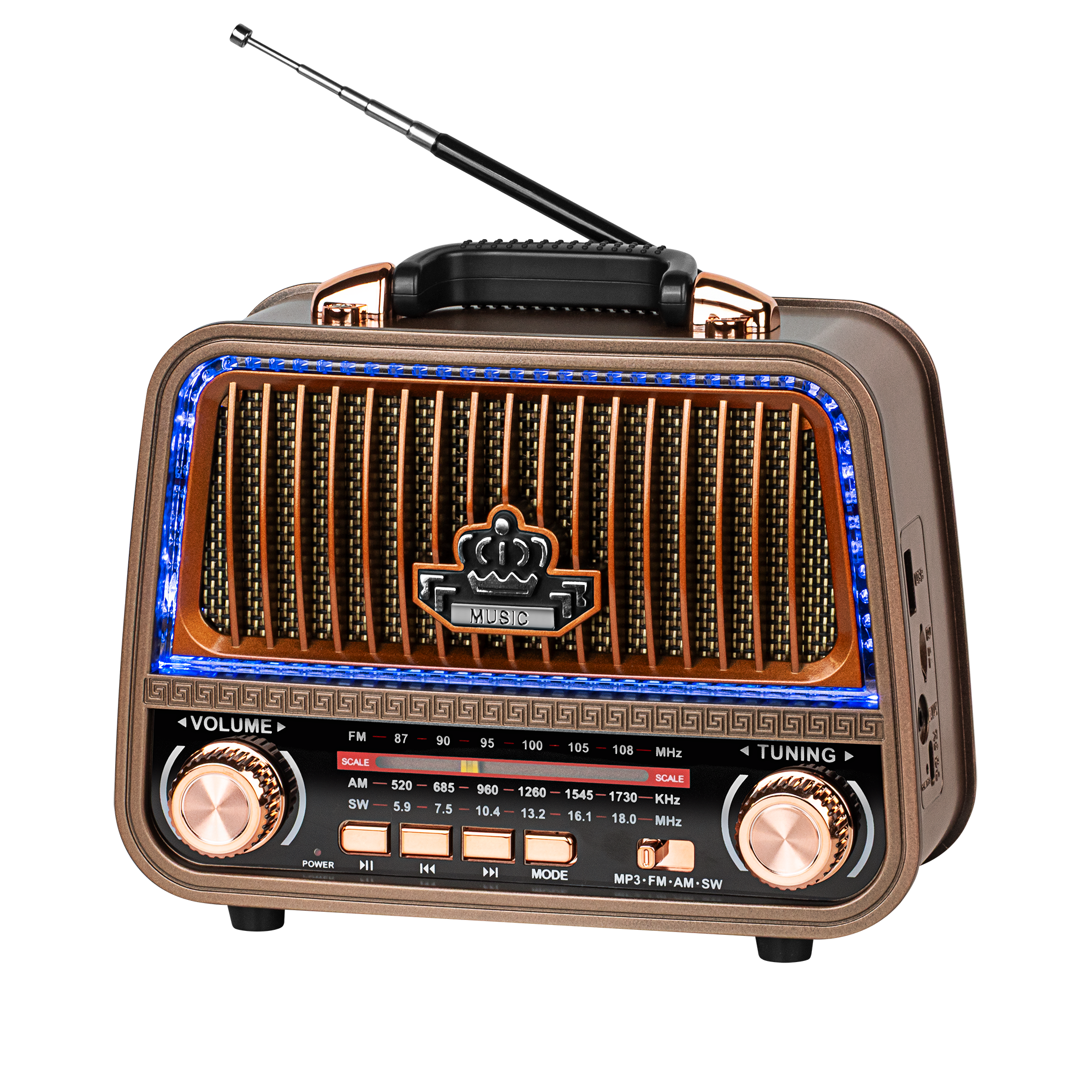 Designul retro unic face din acest radio un plus decorativ pentru orice interior. Inspirat de radiourile clasice, combinat cu detalii elegante si iluminare de fundal LED dinamica, creeaza un efect vizual unic. Este alegerea perfecta pentru iubitorii de stil vintage care solicita si functionalitate moderna.