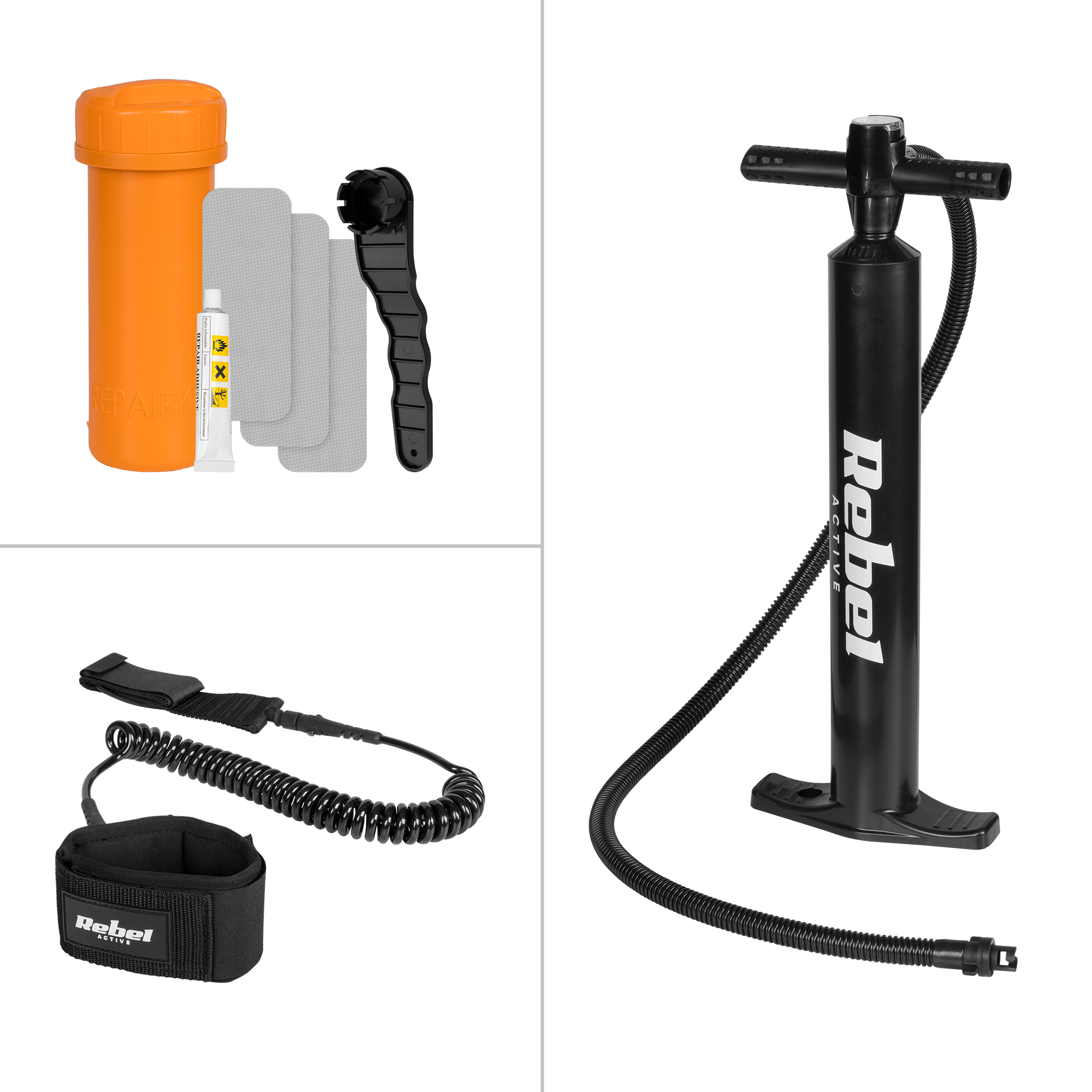 Placa de SUP RBA-4511 vine cu o pompa manuala cu manometru pentru o umflare rapida si eficienta. Mai mult, placa vine cu un kit de reparatii format dintr-o cheie pentru valva, trei petice de reparatii si lipici, astfel incat sa poti remedia rapid problema si sa te poti intoarce la plimbare!