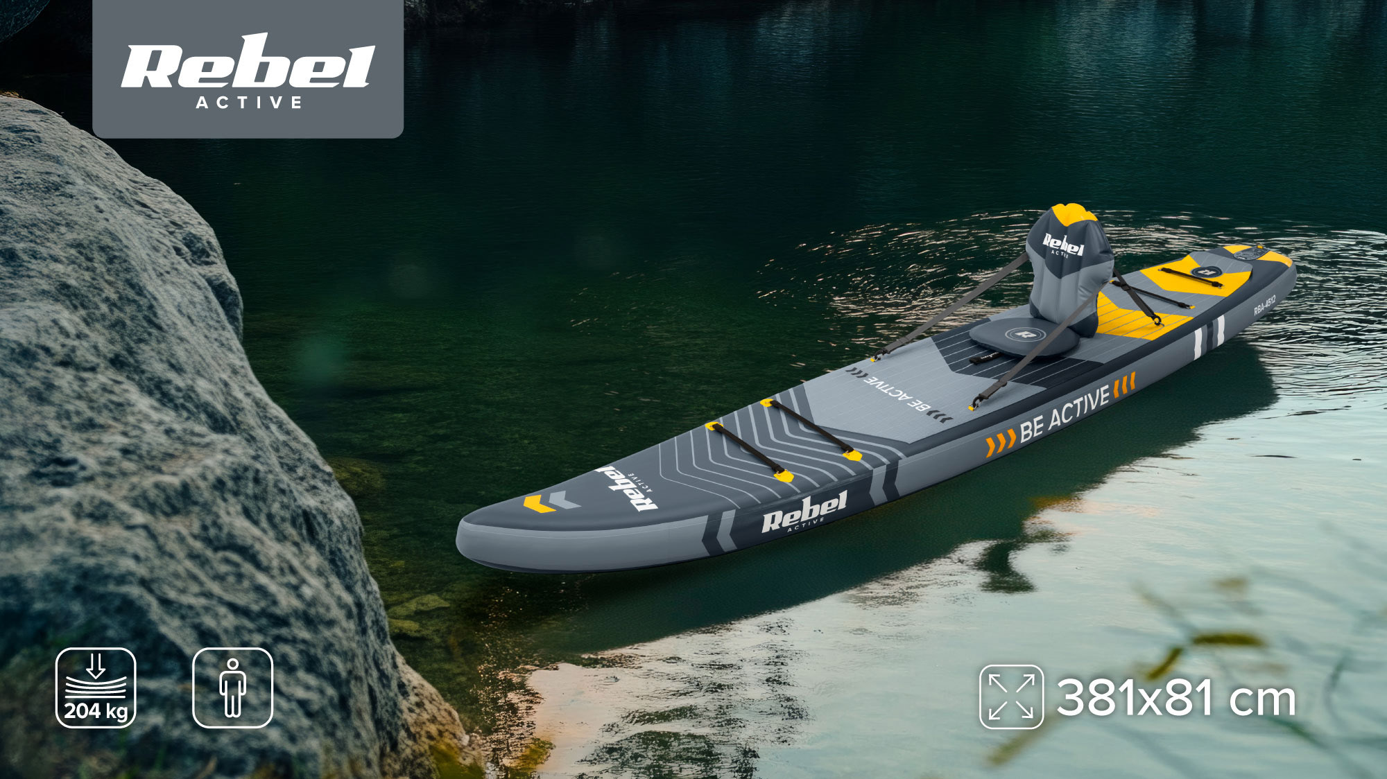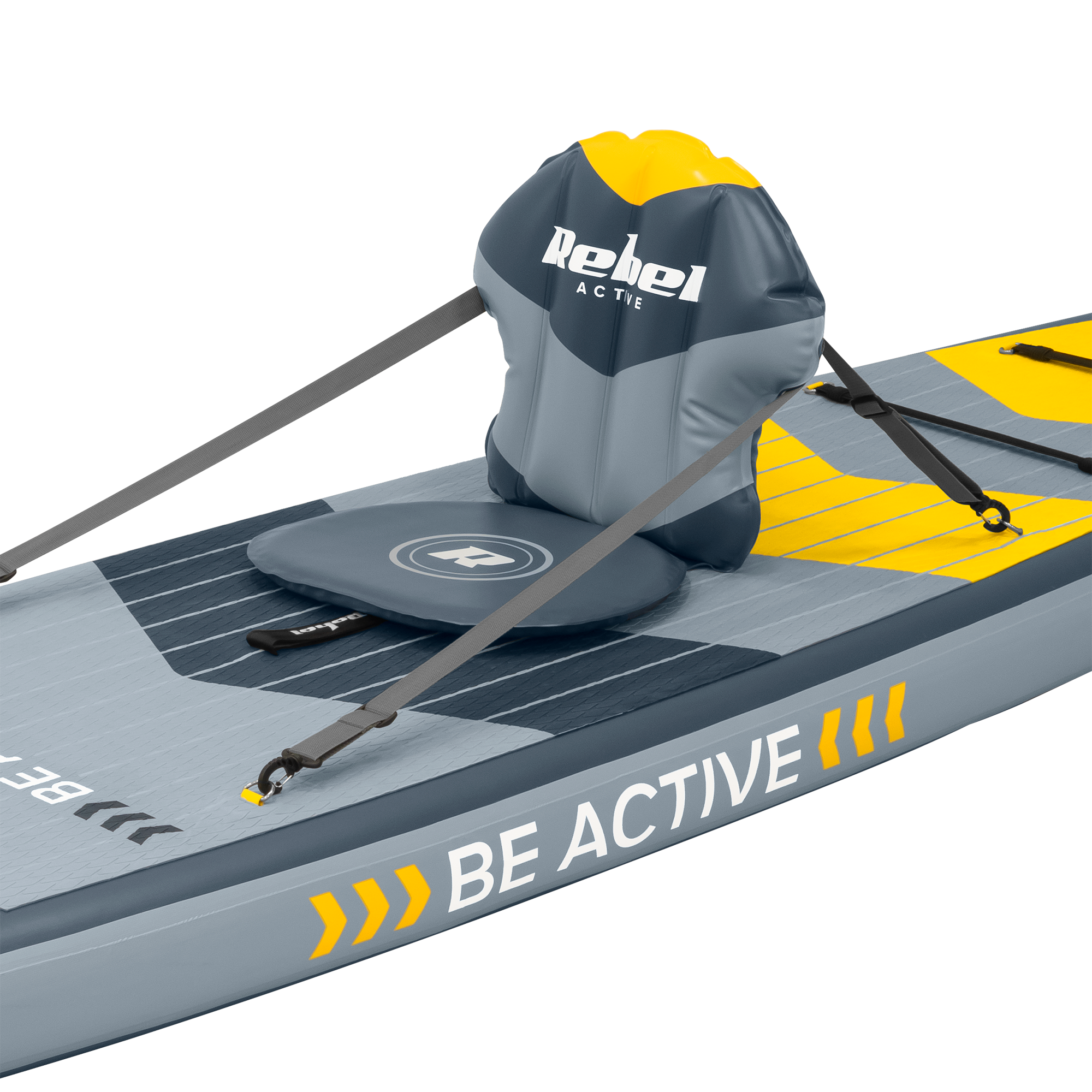 Pentru un confort si o stabilitate si mai mare in timpul vaslitului, placa SUP Rebel Active vine cu un scaun confortabil cu spatar, pe care il poti atasa si detasa cu usurinta in functie de preferinte. Aceasta solutie permite o odihna confortabila in timpul calatoriilor mai lungi pe apa. Relaxeaza-te si bucura-te de priveliste si linistea naturii.