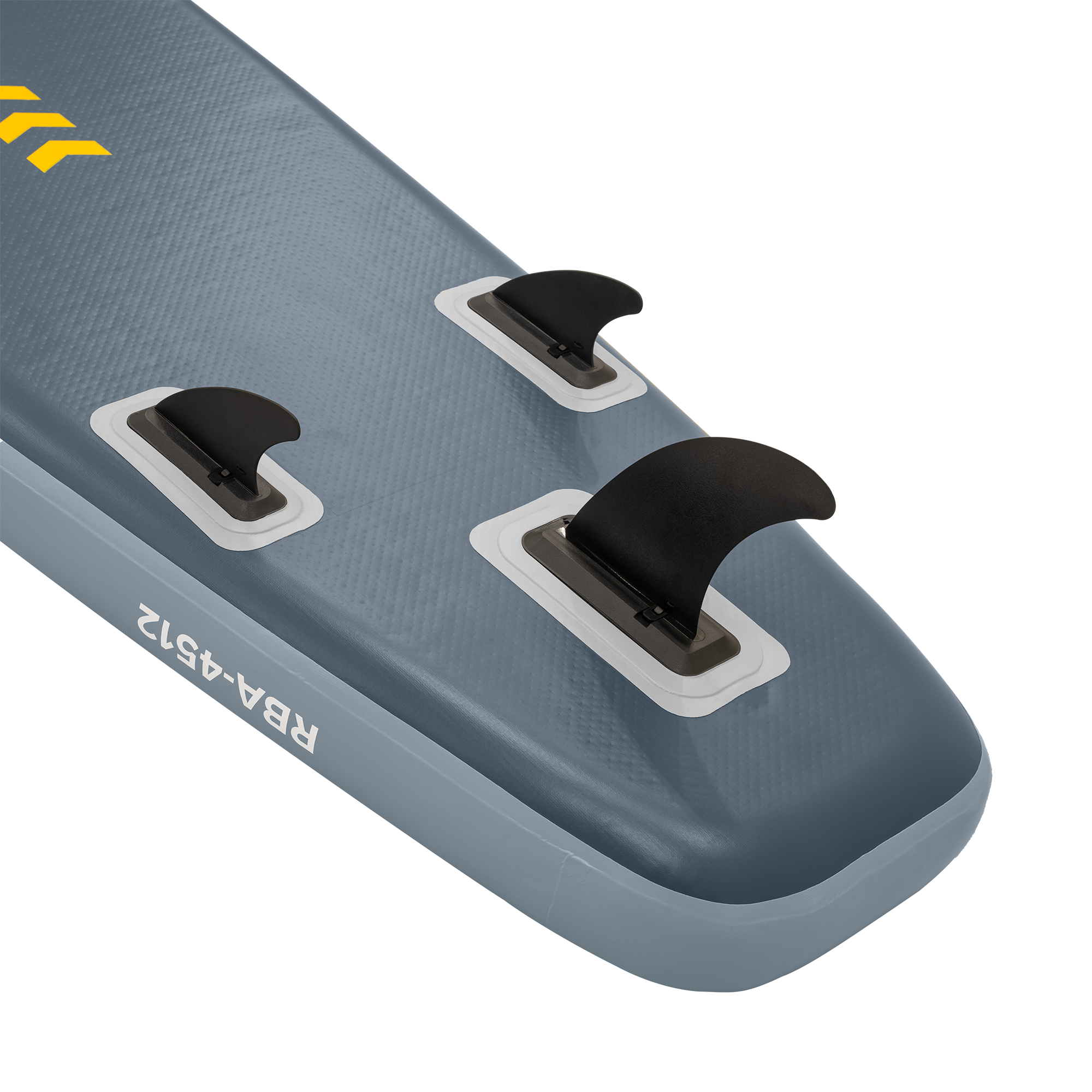 Placa RBA-4512 dispune de trei aripioare glisabile - una centrala mai mare si doua mai mici pe laterale. Aceasta caracteristica ofera echilibrul perfect intre stabilitate si manevrabilitate. Aripioarele laterale suplimentare imbunatatsc controlul in timpul virajelor si permit miscari mai dinamice, cum ar fi in timpul surfingului.