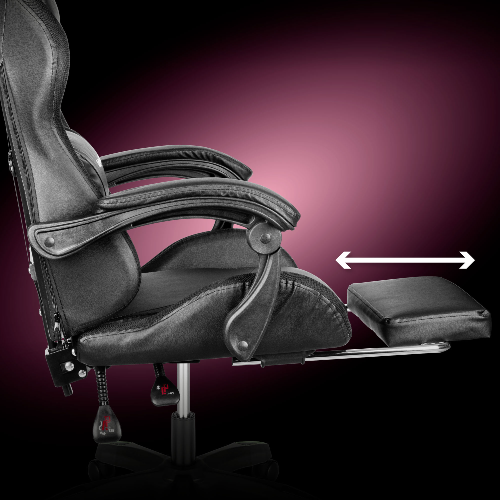 Atinge un nivel superior de confort! Kruger&Matz GX-150 este un scaun de gaming cu suport pentru picioare. Aceasta solutie ofera, de asemenea, un suport adecvat pentru picioare, permitandu-ti sa te relaxezi complet.