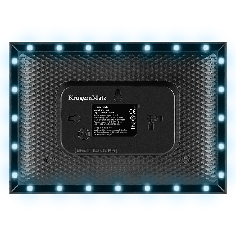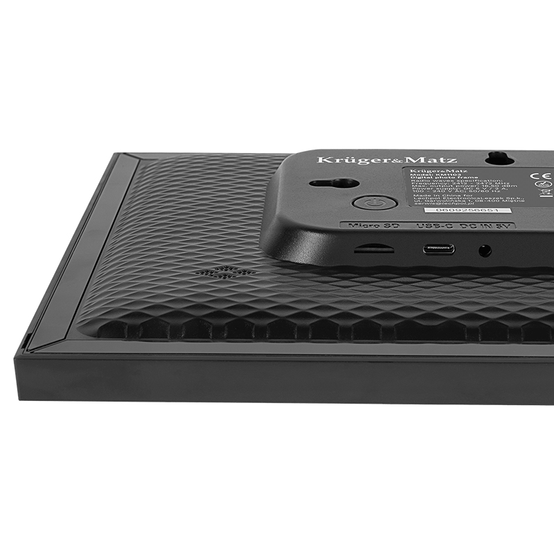 Iluminarea de fundal a ramei Kruger&Matz serveste ca element decorativ elegant, creand o stralucire blanda si uniforma in jurul dispozitivului. Lumina subtila evidentiaza fotografiile afisate, conferind ramei un caracter modern si transformand-o intr-un element de design remarcabil in orice interior.