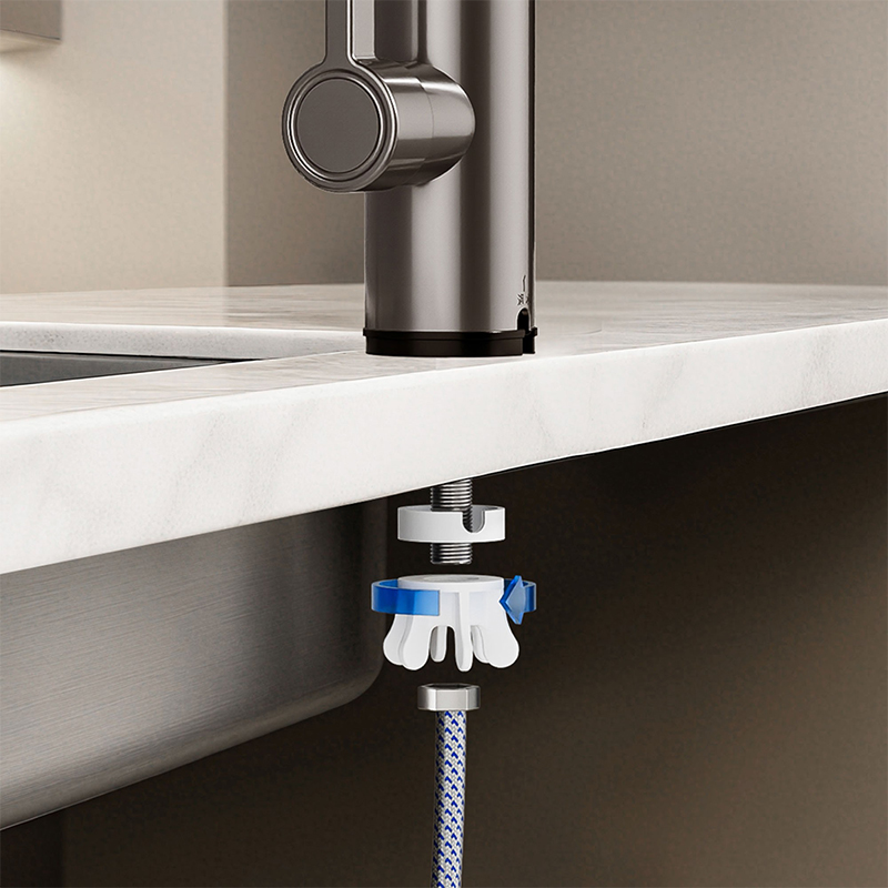 Controlul complet al debitului de apa se obtine datorita articulatiei sferice si rotirii pipei la 360°. Acest lucru iti permite sa directionezi apa exact acolo unde ai nevoie - umplerea oalelor, clatirea vaselor sau spalarea legumelor. Flexibilitatea maxima face ca dispozitivul sa fie usor de utilizat chiar si in spatii de lucru inguste si dificile.