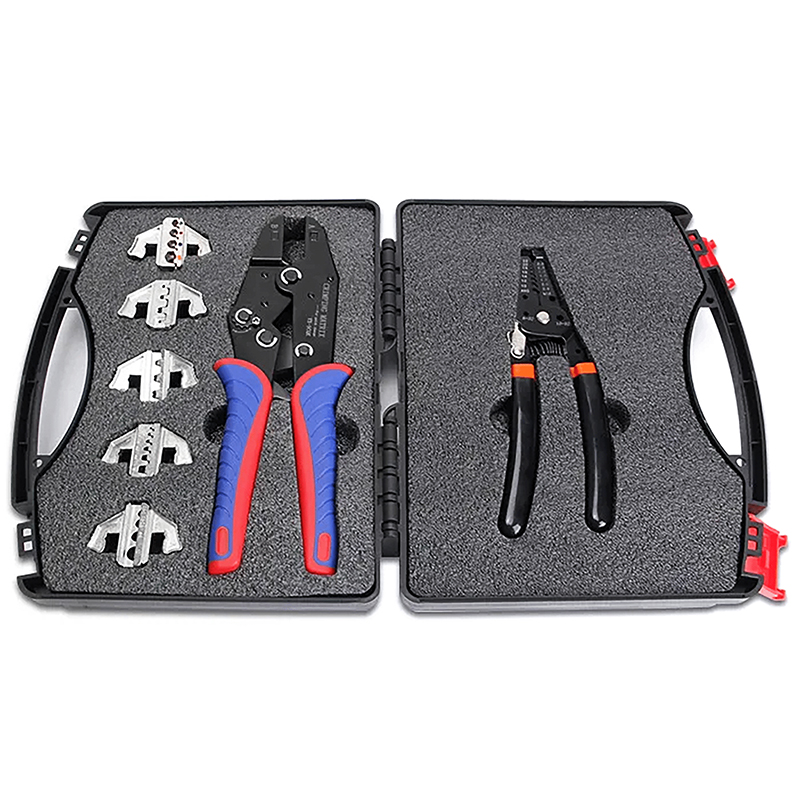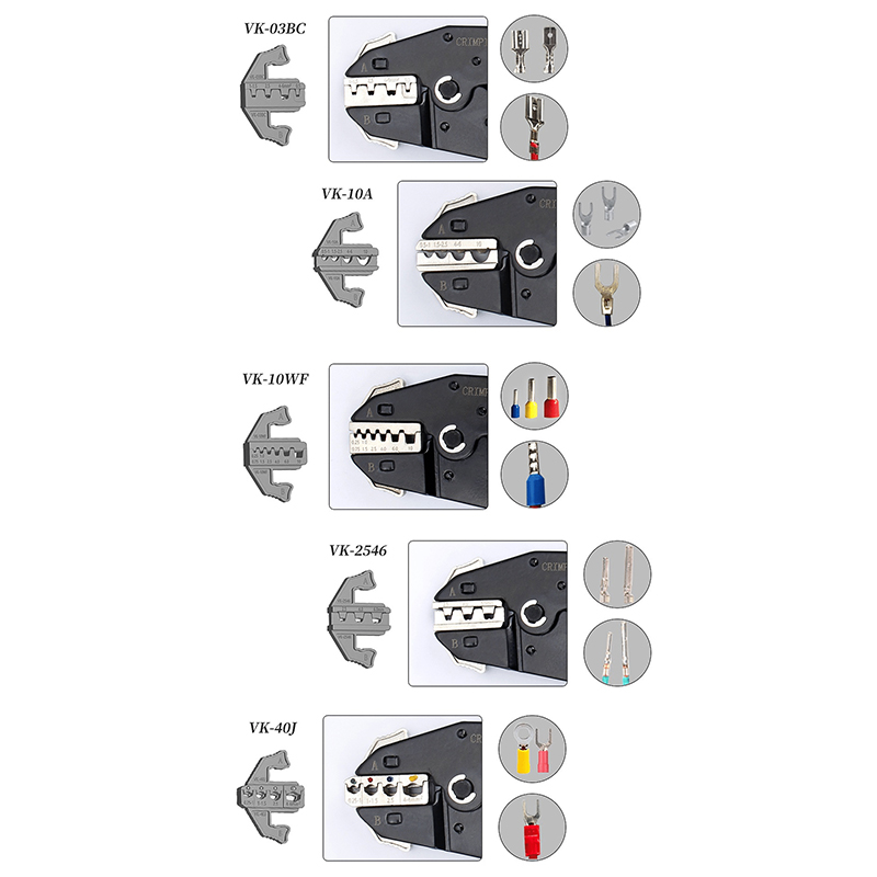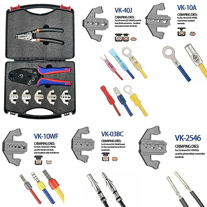 Acest kit practic este potrivit ca instrument pentru sertizarea terminalelor de cablu, a conectorilor și a conexiunilor terminale.