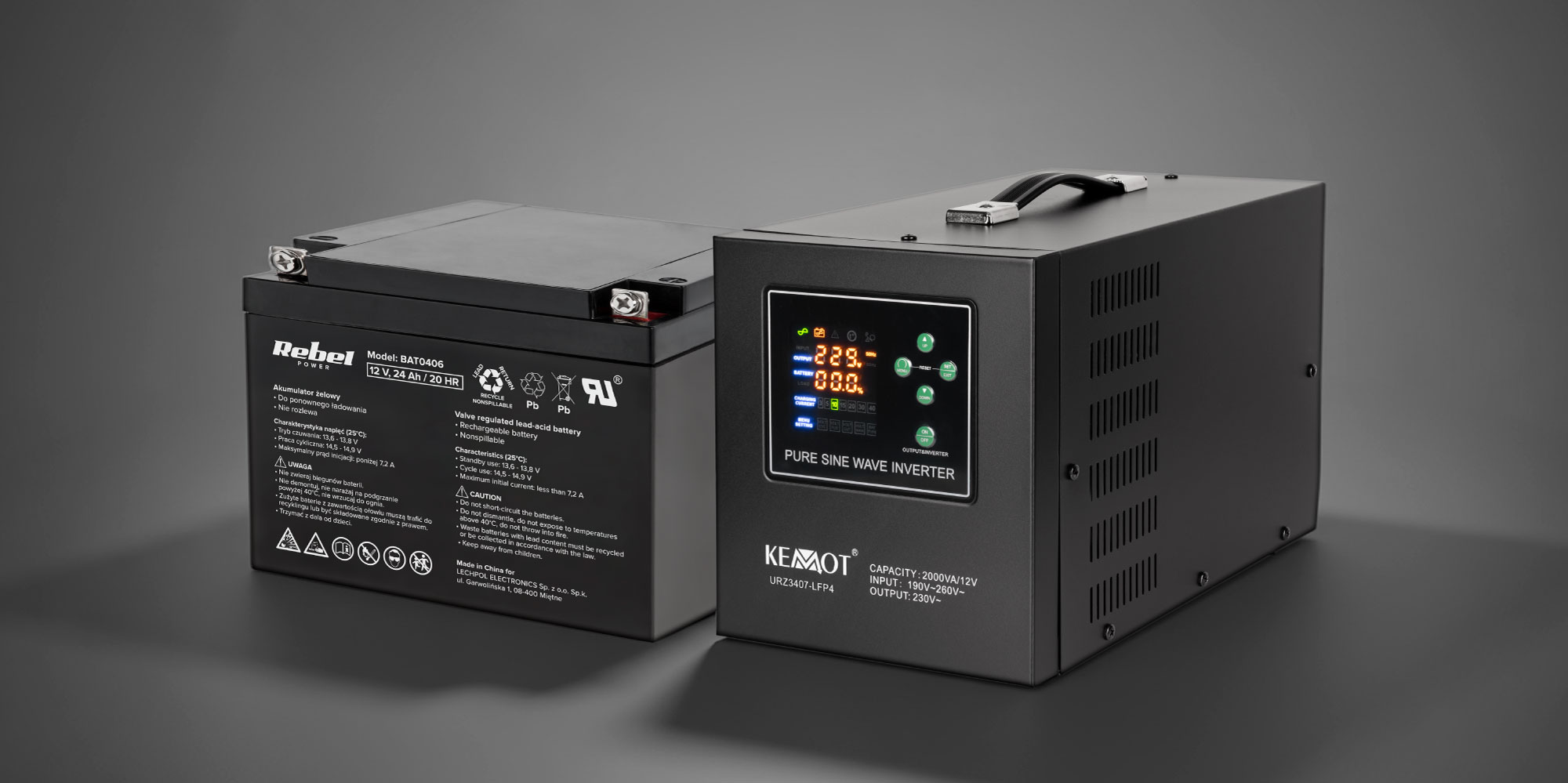 Pentru a asigura functionarea optima a UPS-urilor KEMOT, trebuie aleas un acumulator extern potrivit. Alegerea acumulatorului potrivit se poate face dupa formula aproximativa: la sarcina de 100 W = 10 A consumati din acumulator.